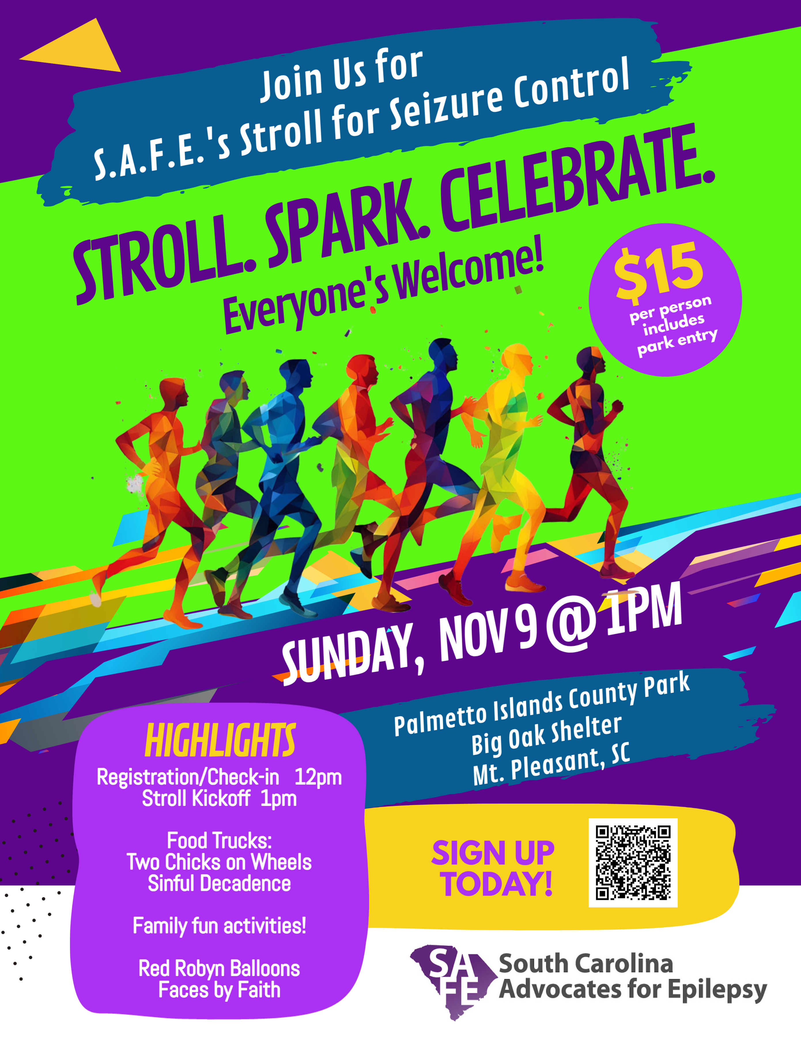 Stroll for Seizure Control — Sunday, November 9 | 12 PM Registration/Check-in | Palmetto Islands County Park, Mt. Pleasant